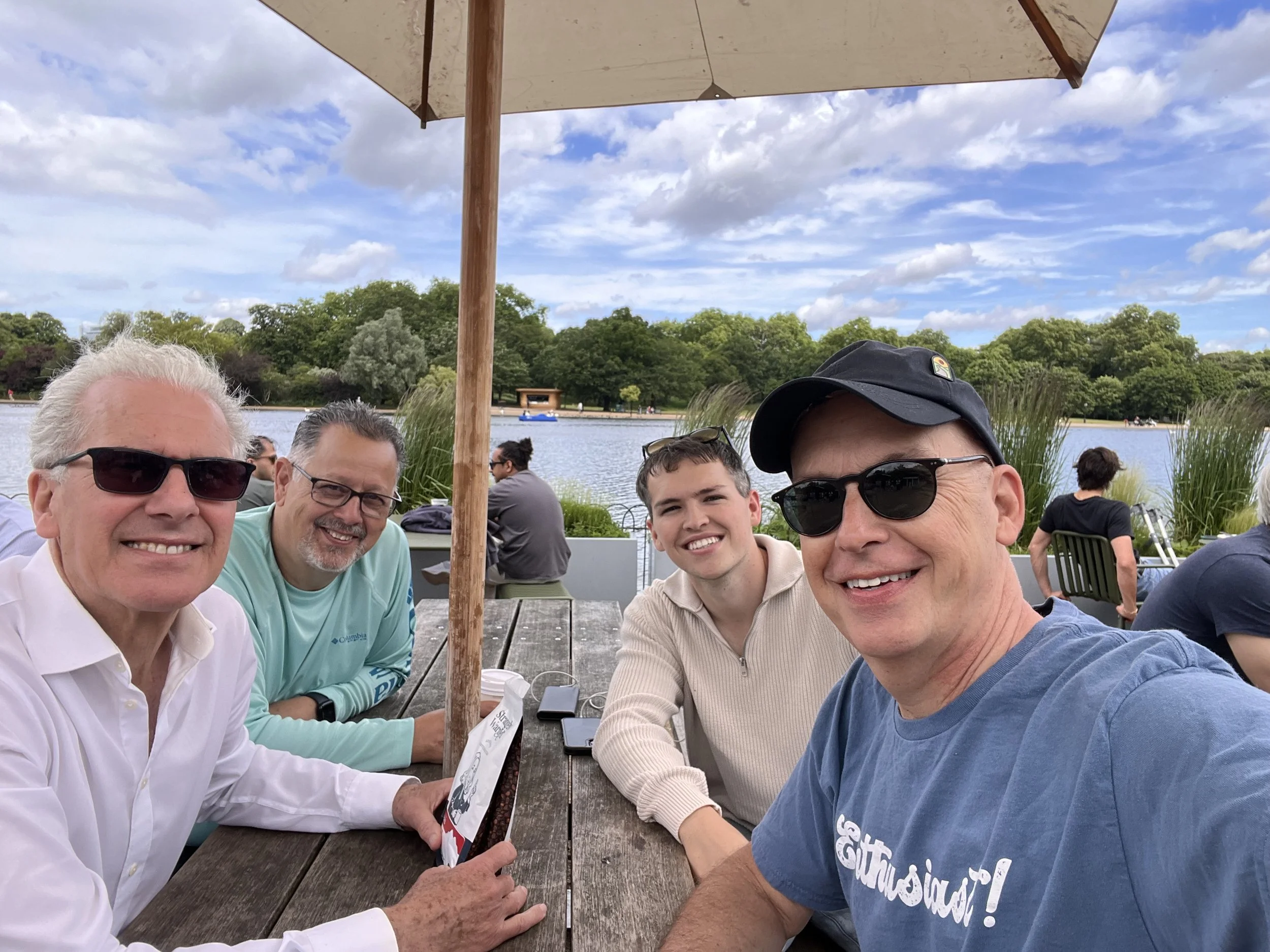 So, on Thursday morning, May 29th, David, his son Henry and I took an Uber from our hotel to Hyde Park, the famous garden in the city center of London to meet Nicky for a coffee. Even though we left with plenty of time, the traffic was awful because of rehearsal by King Charles’ horse brigade for the celebration of the King’s birthday. It gridlocked an already busy London traffic. Didn’t they know I was meeting Nicky Gumble that morning? We showed up about 45 minutes late and I was sure we had missed out on our opportunity to spend time with him. What would I tell all my preacher friends? Isn’t that sick of me? But to our surprise when we arrived at the coffee shop in Hyde Park, Nicky was sitting at a picnic table with a cup of coffee chatting it up with two friends.